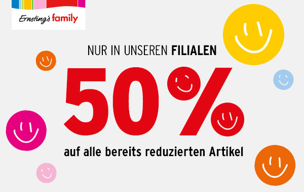 50 % RABATT auf bereits reduzierte Artikel bei Ernsting’s family